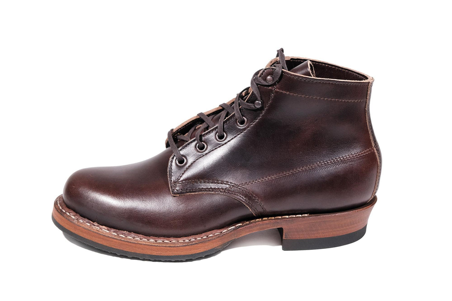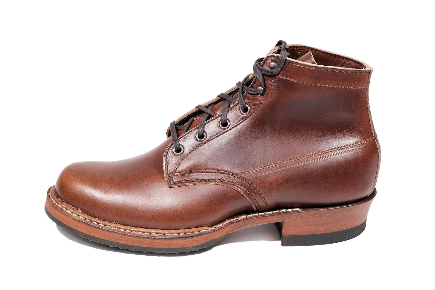 The Semi-Dress is White's answer to a light utility shoe for active workers who are constantly on their feet. The hand-sewn, stitch-down construction shapes the shoe to your foot to ensure superb comfort. A single, flexible oak leather sole, combined with a 5-inch mid-weight leather upper, provides the same tough trademark qualities of a White's work boot in a shorter shoe height.