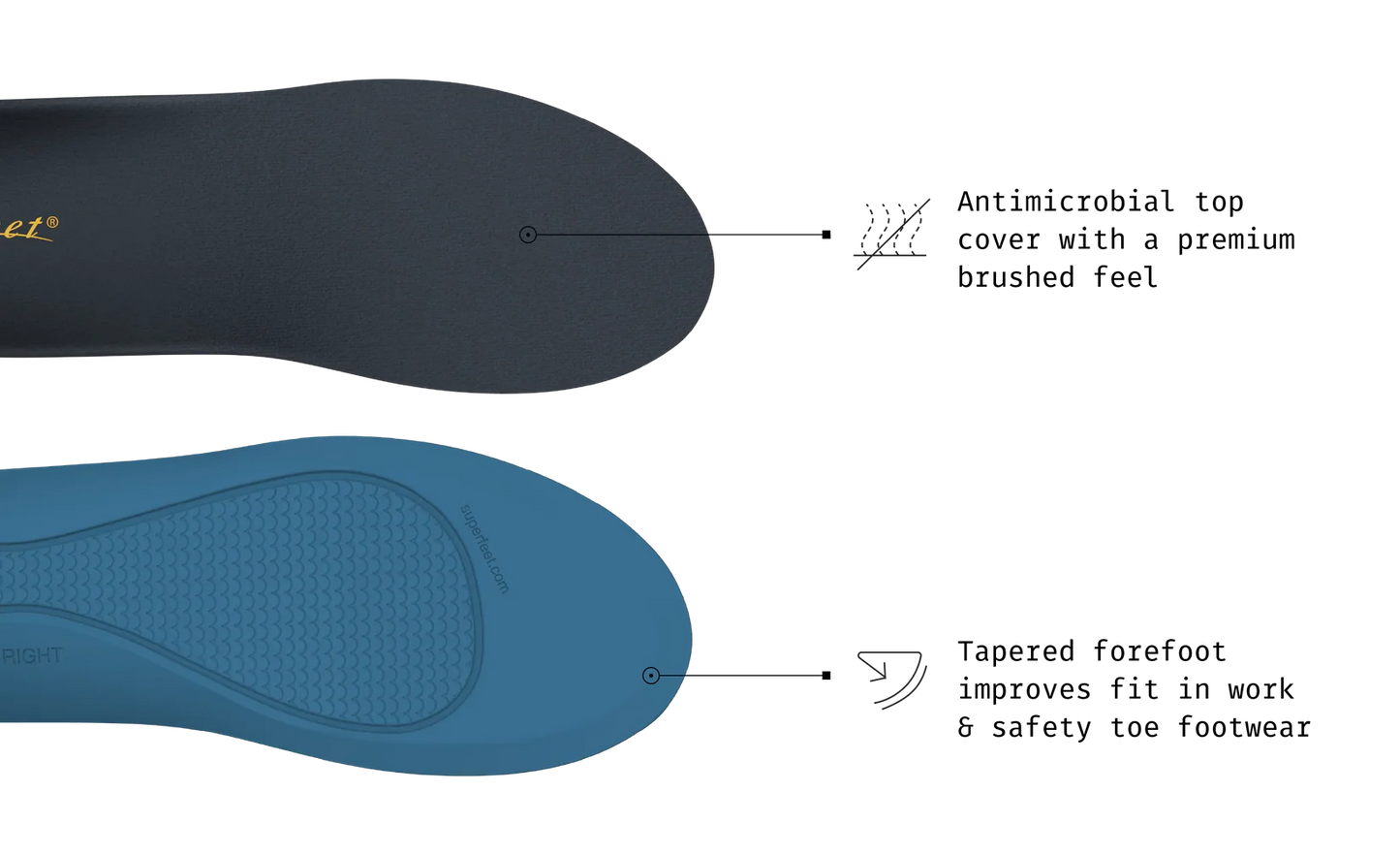 Superfeet Work Memory Foam insoles provide dual-layer memory foam cushioning that relieves pressure and molds to your foot shape for unmatched comfort. The antimicrobial brushed top cover helps reduce odors and the tapered forefoot improves fit in work and safety toe footwear. Get durable, memory foam comfort designed to flex with the foot as you move for long-lasting support shift after shift.